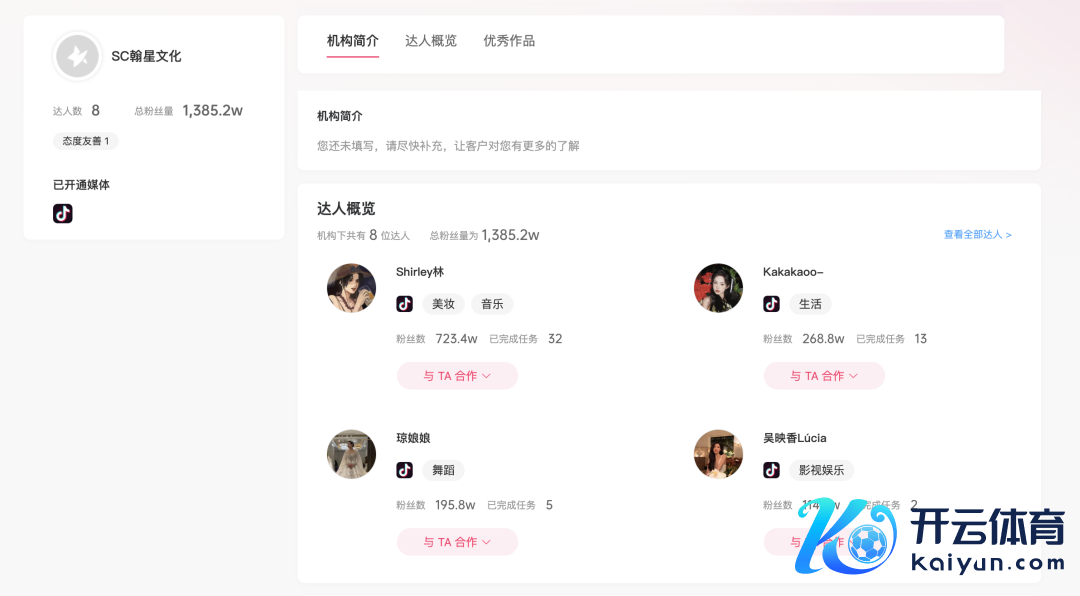 除了“Shirley林”外,该机构旗下另有多个百万粉达东说念主,波及糊口、影视、前锋等多个限度。
