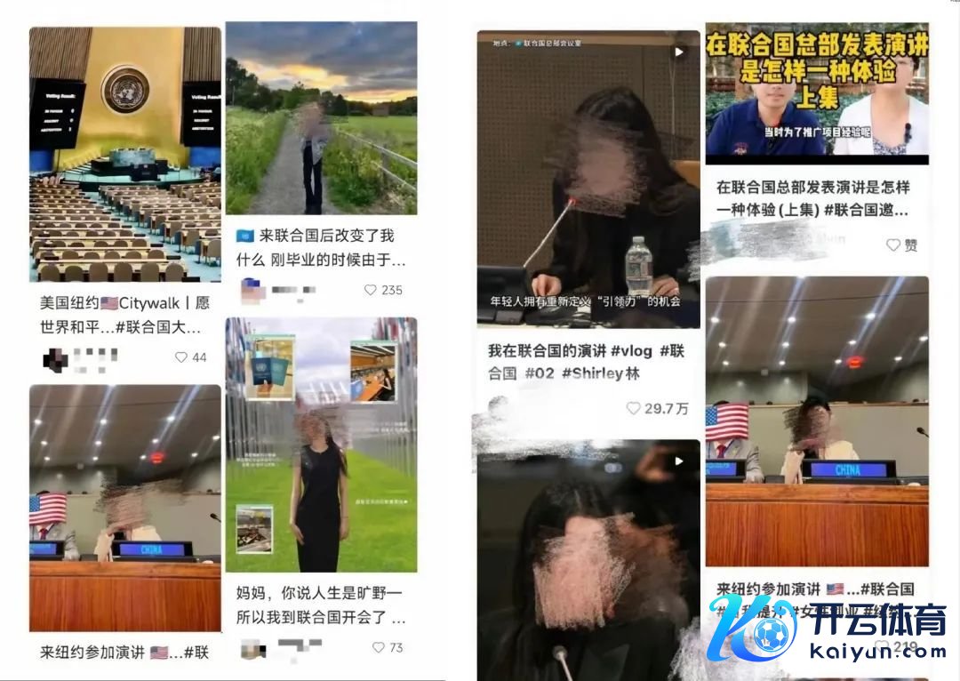在晒出的帖子中,他们频繁身着正装、妆容精细,有的在连系国总部大楼列国旗杆下拍照,有的在空荡会议大堂合影,有的对着发话器演讲。