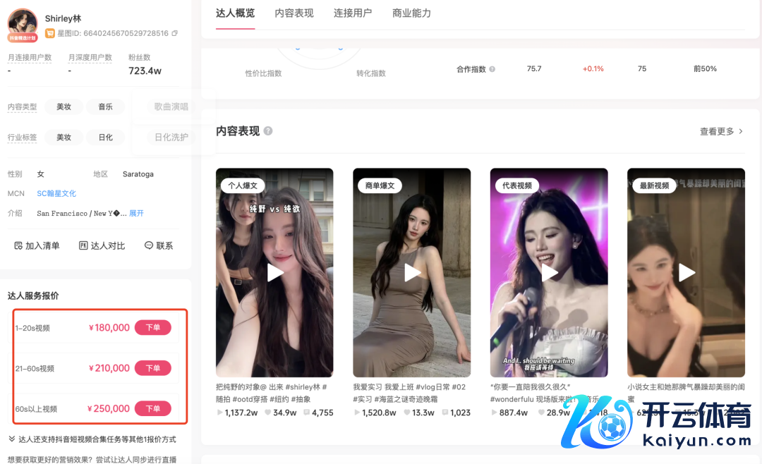 巨量星图炫耀,“Shirley林”是MCN机构SC翰星文化旗下的达东说念主,1~20秒告白报价18万,21~60秒告白报价21万,超60秒告白报价25万元。