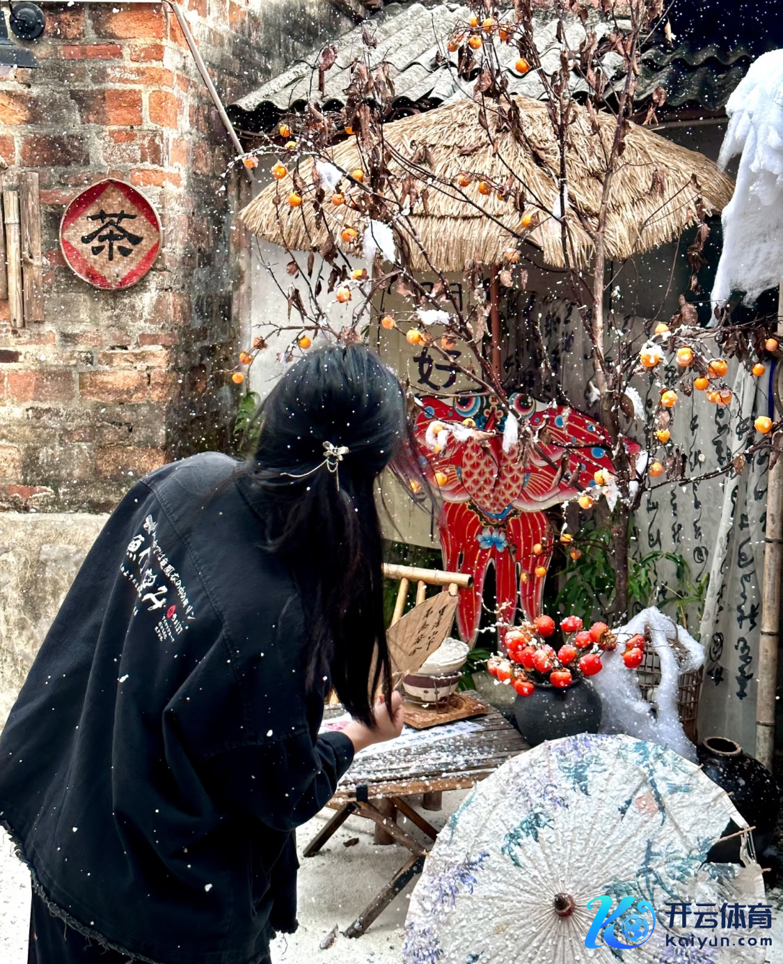 一辆坚持的28式自行车、茅草顶的小茶亭、传统书道墙绘、屋檐上的飘雪、硕果累累的“柿子树”……近日,博罗县福田镇一家新录取茶舍以其新录取魄力和东说念主造飘雪景不雅kaiyun官方网站,速即成为热点打卡地,迷惑了广博旅客前来体验。