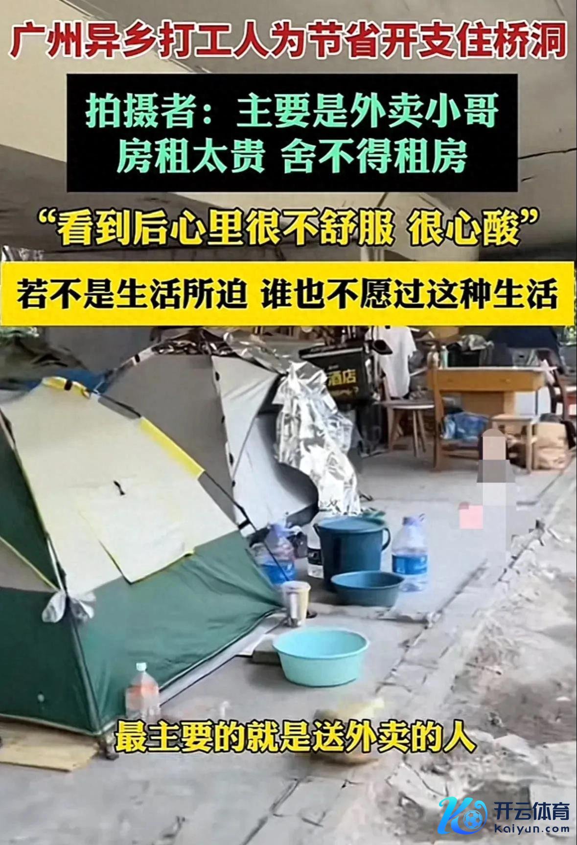 据拍摄者先容,这里住的宽广是外卖小哥,还有打工的和流浪汉。因为城里房租太贵,舍不得租房住,为了省点钱,就在大桥下搭帐篷住。
