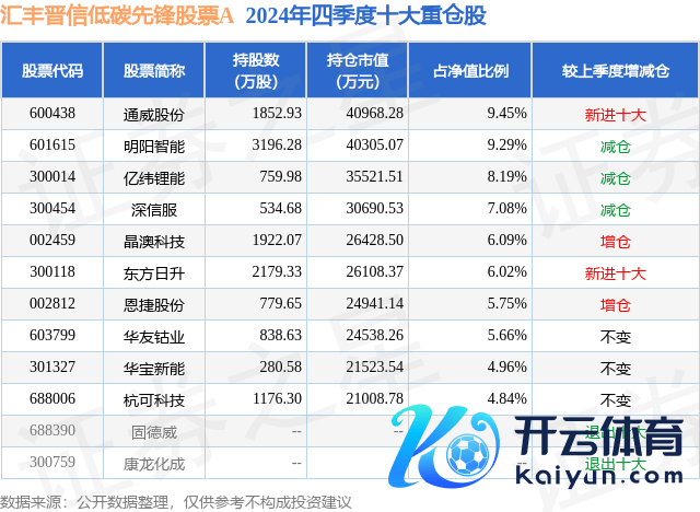 汇丰晋信低碳前卫股票A为股票型基金,阐明最新一期基金季报闪现,该基金钞票设立:股票占净值比94.21%,债券占净值比1.54%,现款占净值比4.82%。基金十大重仓股如下: