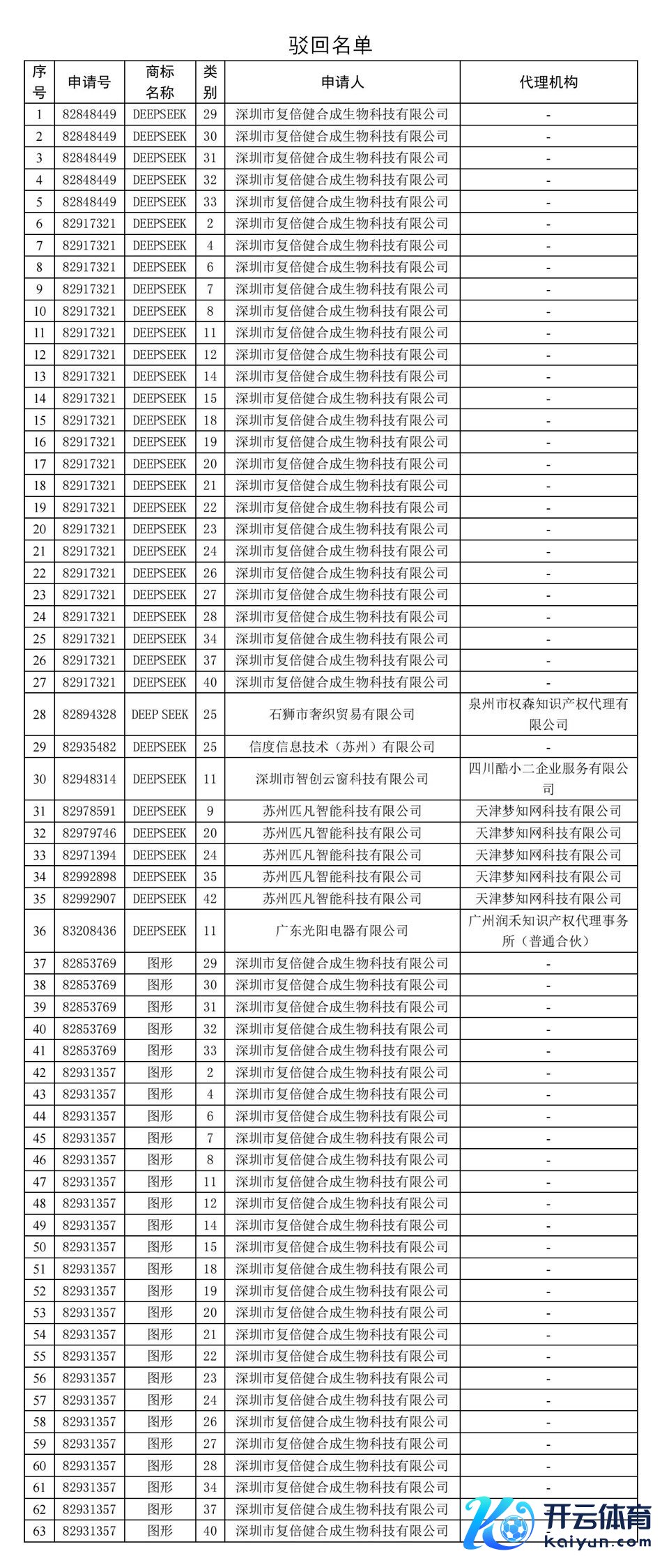 国度常识产权局强硬打击此类坏心央求动作,照章对第82848449号“DEEPSEEK”等63件商标注册央求给予驳回。名单附后。